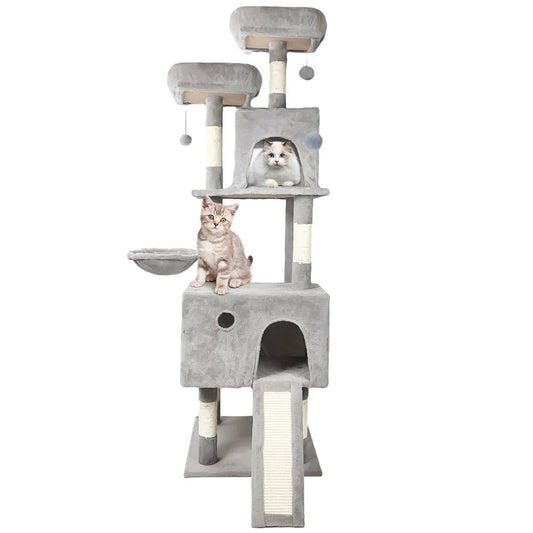 Arbre à chat maine coon - condo - large - perchoir - gris