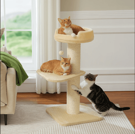 Arbre à chat maine coon - beige - robuste - sécuritaire